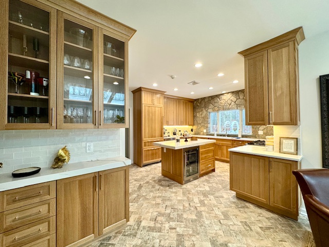 This renovated kitchen blends timeless warmth with modern functionality in a bright, inviting layout.